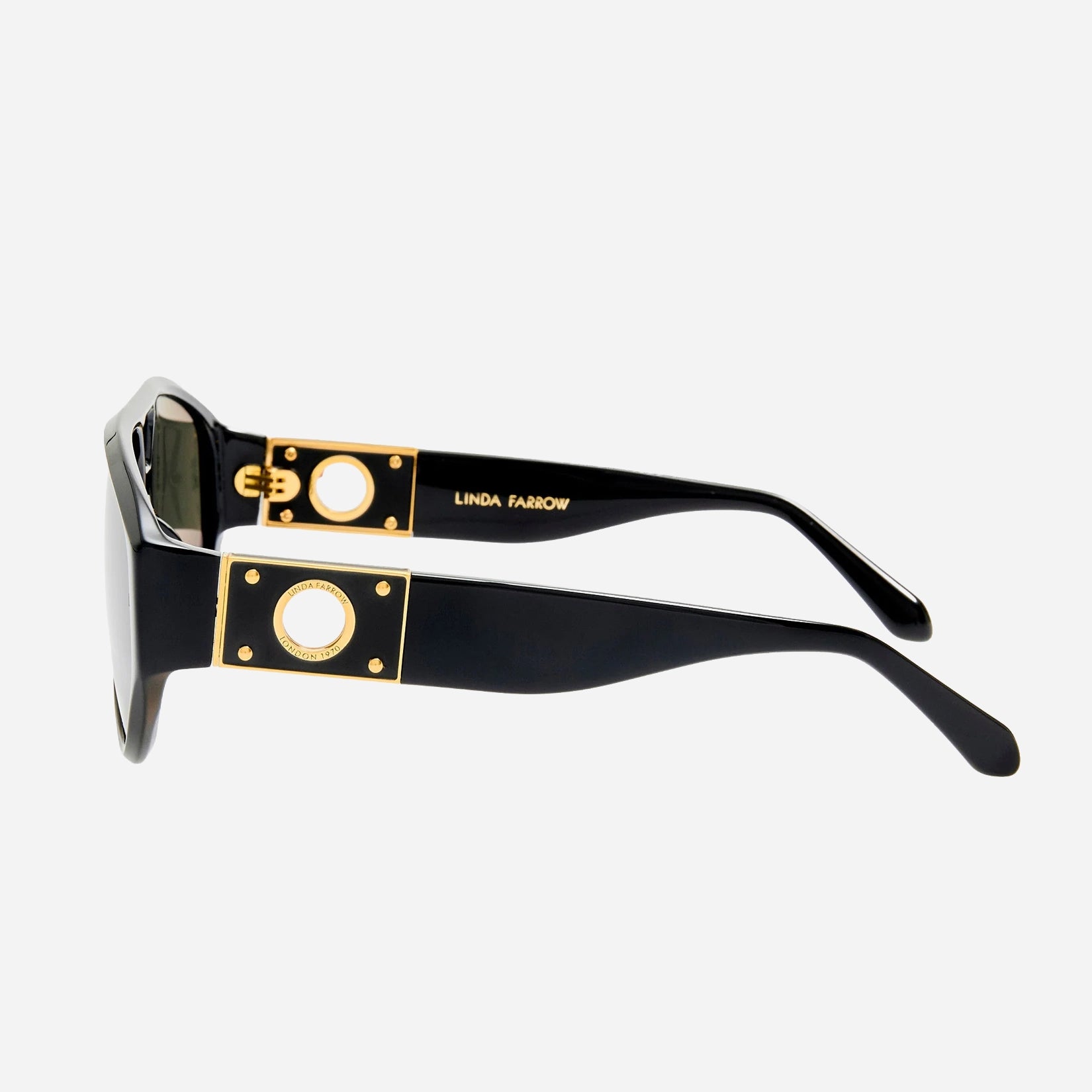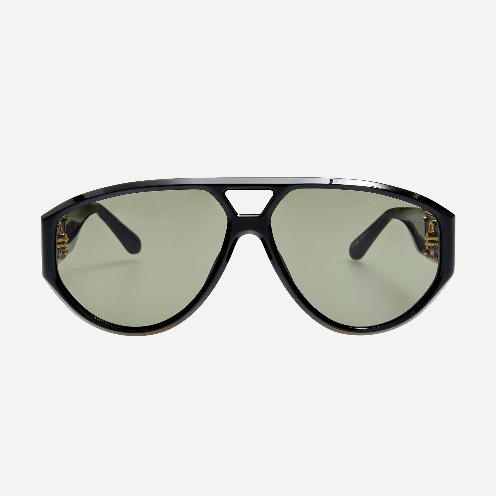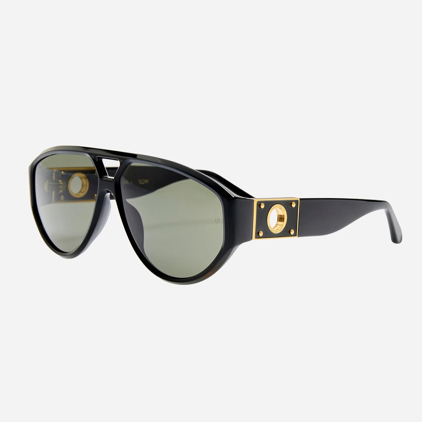 O modelo aviador aperfeiçoado. Fabricado em acetato italiano preto polido à mão, o Portia apresenta hastes com o icónico ilhó de titânio banhado a ouro de 22 quilates. Um ajuste perfeito que exala luxo discreto.